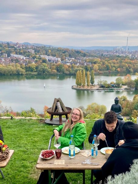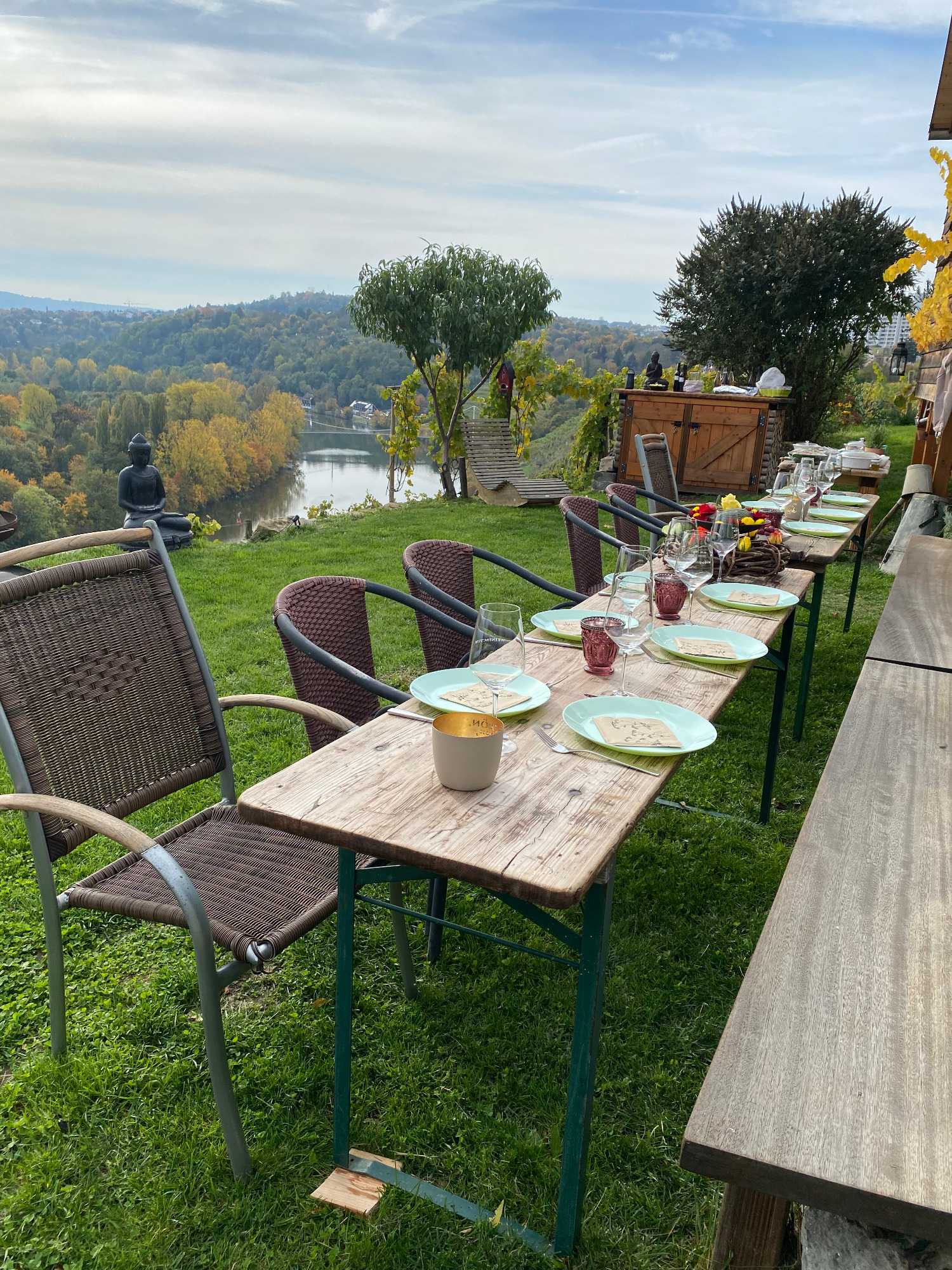 Erlebt ein einzigartiges Candlelight-Dinner in traumhafter Kulisse – umgeben von malerischen Weinreben und mit direktem Blick auf den Max-Eyth-See. Wenn die Sonne langsam untergeht und sanftes Kerzenlicht die Szenerie erleuchtet, entsteht eine Atmosphäre, die verzaubert.