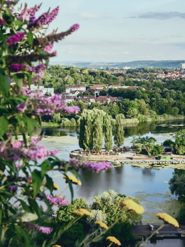 Genieße einen unglaublichen Ausblick auf den Max-Eyth-See, der den Abend
