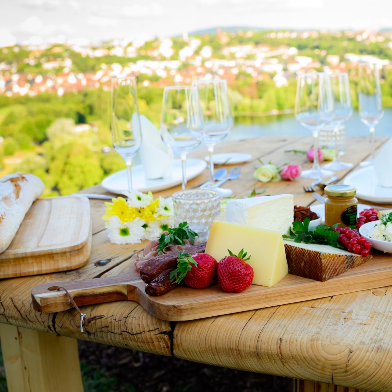 Erlebt ein einzigartiges Candlelight-Dinner in traumhafter Kulisse – umgeben von malerischen Weinreben und mit direktem Blick auf den Max-Eyth-See. Wenn die Sonne langsam untergeht und sanftes Kerzenlicht die Szenerie erleuchtet, entsteht eine Atmosphäre, die verzaubert.
